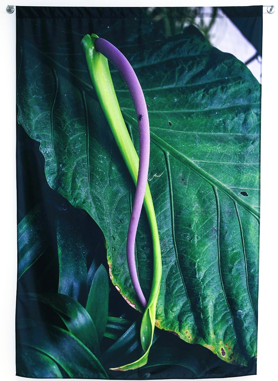 Su Extended Flowering, 2024; Acrilico con stampa UV, tessuto