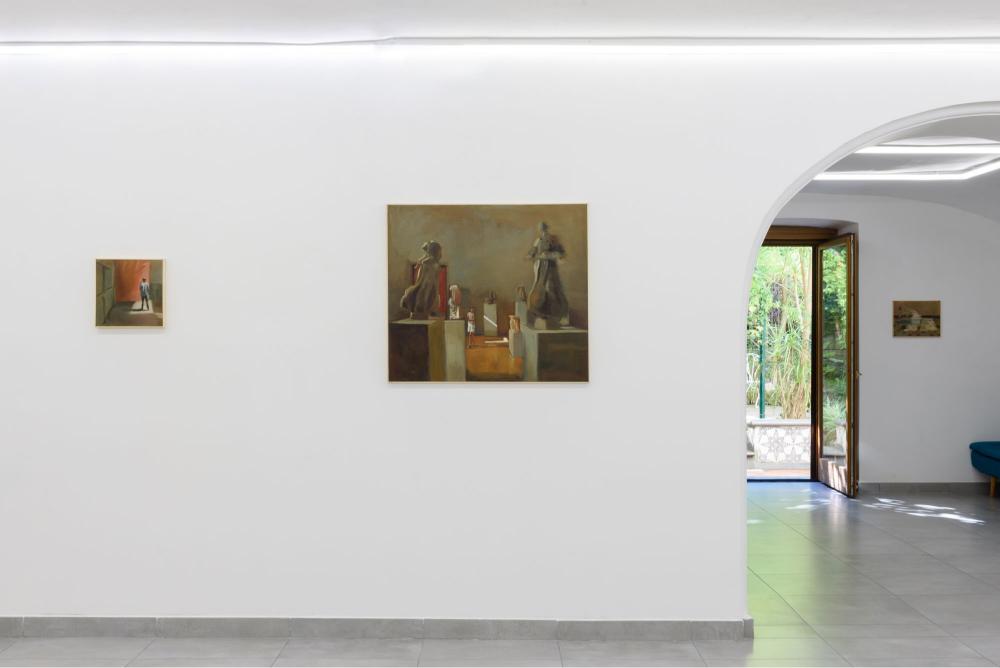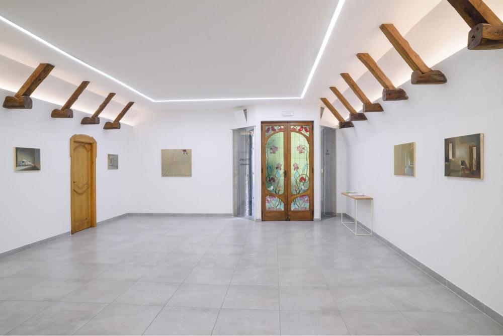 La Motta is known for both his pictorial and sculptural work, he portrays and models –without illustrating– urban landscapes, its contours and the one who lives there. On display are 20 new pictorial works by the artist in which intimate and collective spaces are emphasized in their expressive autonomy, returning heterogeneous fragments of today’s imagination to the observer in an interpretation that contains persistent and circular references between the elements present there. His language is full of metaphorical figures, a construct of semantic stratification, graphic and evocative, as in “The Green Room”, where, while recognizing the connection and familiarity between the subjects, one is transported to a possible and distant universe. Each layer of paint, wash, and sketch is simultaneously an allegory, evoking a mental image and reconstructing a shared experience, as in “Arazzo,” where the artist invites on a journey to discover places that hold small fragments of human history. In “Donna in azzurro” or in “Parete gialla” a clear psychobiological path appears to indicate a trail that must be retraced and experienced by the person standing in front of it. Because this is in fact what happens with La Motta’s works: each of them is a narrative chain system, constructed through degrees of abstraction that push to enter, dismantle and rearrange the underlying mechanism that goes beyond the pictorial material and the brushstroke. La Motta’s imaginary matrices – including cinema and music – intersect and translate into a syncretism articulated by a corpus of messages and latent meanings that are hidden in the compositional elaborations of his works. His signature is found precisely in the pictorial quality, in the deliberately reduced palette and in the use of a direct and synthetic language from which emerges a play of deformed shadows, facets and angles, where nothing is truly what it seems because each element is stuck to a recent history or to a distant space and time. The gesture, the material and the curious gaze establish a horizontal dialogue with the observer who is called to discover the supra-textual and timeless constraints present in his works.