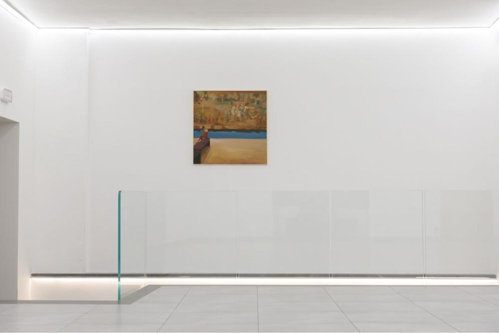 La Mottaè noto sia per la sua opera pittorica sia per quella scultorea, ritrae e modella – senza illustrare – i paesaggi urbani, i suoi contorni e colui che ci abita. In mostra 20 nuovi lavori pittorici dell’artista nei quali gli spazi intimi e collettivi, sono enfatizzati nella loro autonomia espressivarestituendo all’osservatore frammenti eterogenei dell’immaginario odierno in una chiave di letturache racchiude richiamipersistenti e circolari fra gli elementi ivi presenti. Il suo è un linguaggio pieno di figure metaforiche, un costrutto di stratificazione semantica, grafica ed evocativacome in “The green Room”, dove pur riconoscendone la connessione e familiarità tra i soggetti, si viene trasportati in un universo possibile e lontano. Ogni stesura pittorica, velatura e tratto abbozzato è allo stesso tempo una allegoria, che evocaun’immagine mentale e ricostruisceuna esperienza condivisa come in“Arazzo”, dove l’artista invita a intraprendere un viaggio alla scoperta di luoghi che albergano piccoli ritagli della storia dell’uomo. In “Donna in azzurro” o in “Parete gialla” appare un chiaro tracciato psicobiologico ad indicare una scia che deve essere ripercorsa ed esperimentata da colui che si trova davanti. Perché è infatti questo ciò che accade con le opere di La Motta, Ognuna di loro è un sistema narrativo a catena, costruito per gradi di astrazione, che spinge ad entrare, smontare e riassettare l’ingranaggio sottostante che esula della materia pittorica e dalla pennellata.